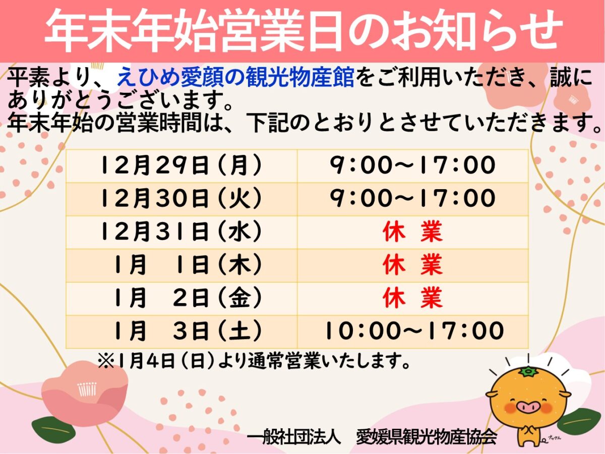 平素より、えひめ愛顔の観光物産館をご利用いただき、誠にありがとうございます。